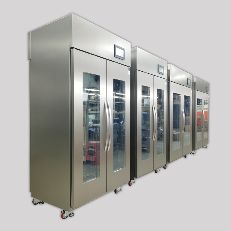 4.柜門:采用大面積雙層真空玻璃組成,確保柜體牢固。柜門裝有永磁密封膠條,確保柜內(nèi)的密閉性;